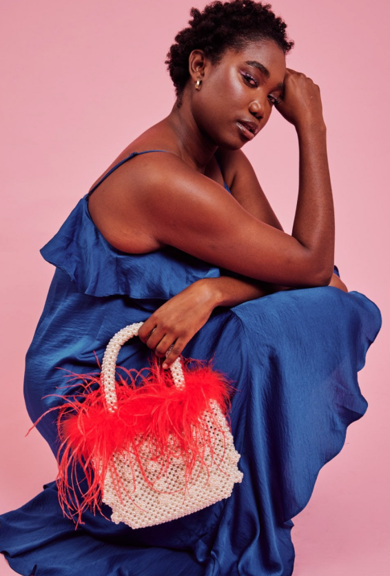 NEW Jayley Handmade Pearl Tote Bag with Feather Trim